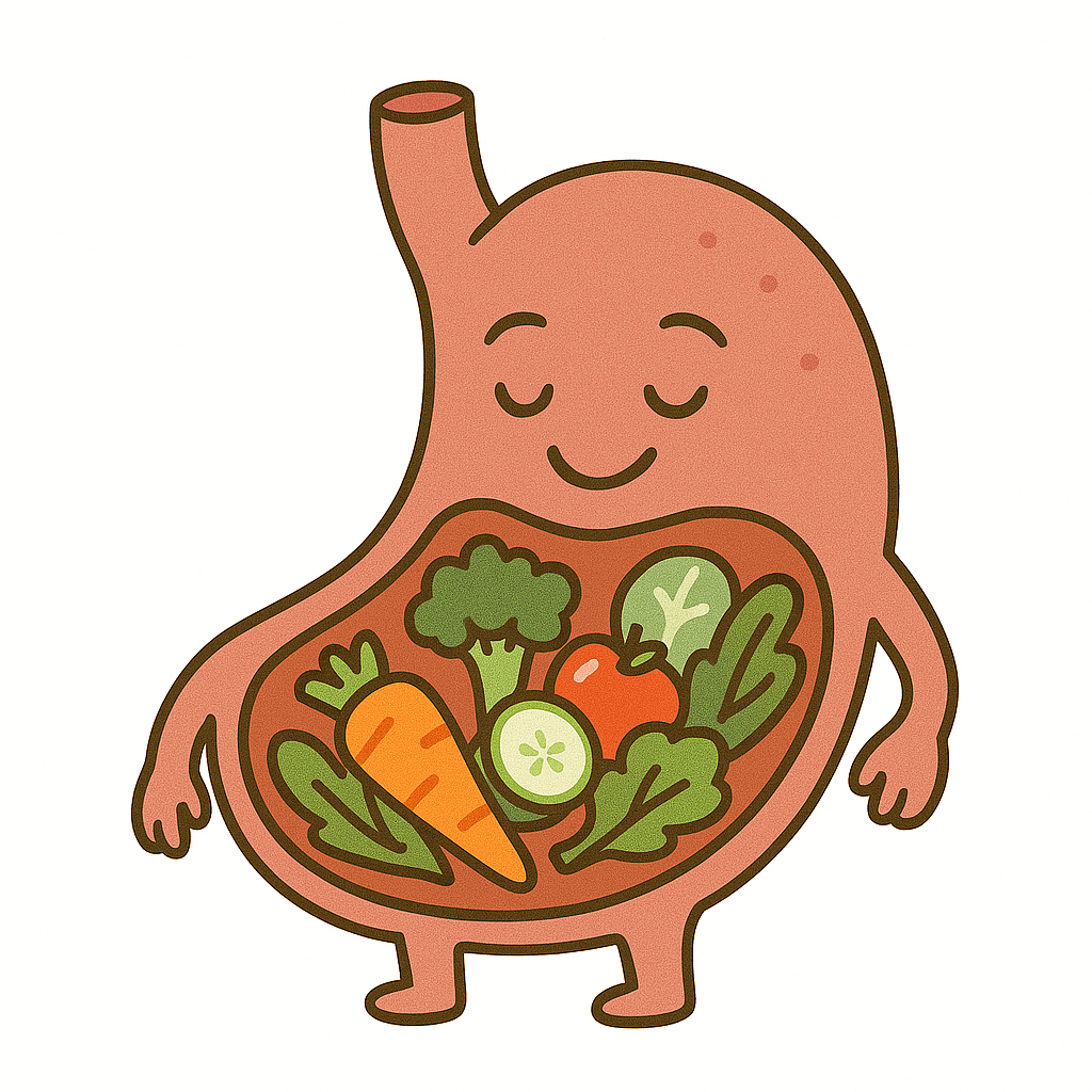 Im Magen sitzen Dehnungsrezeptoren. Wenn der Magen sich mit Volumen füllt (z. B. durch Wasser, Gemüse, Ballaststoffe), registrieren diese Rezeptoren den Druck und senden ein erstes Sättigungssignal ans Gehirn.